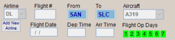 fields will copy the field entry just above it: Date, Flt #, Acft #, Equip