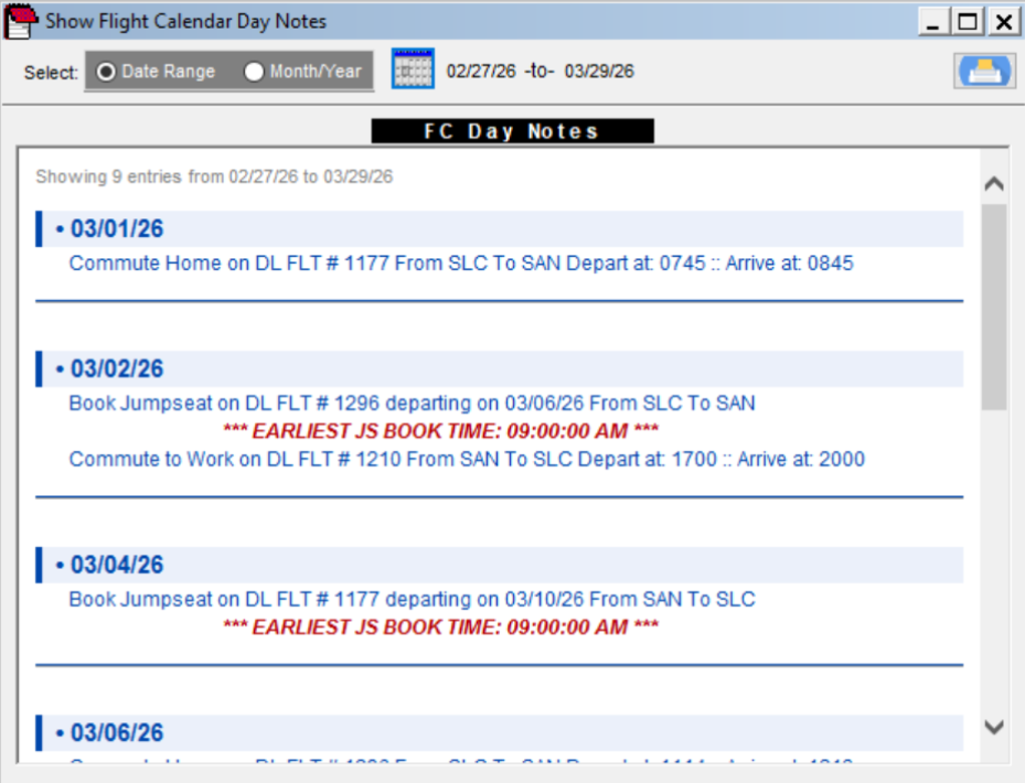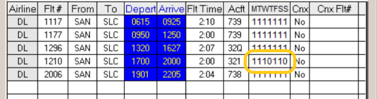 pairings to the PFL, the flight segments are ordered by date/segment number.