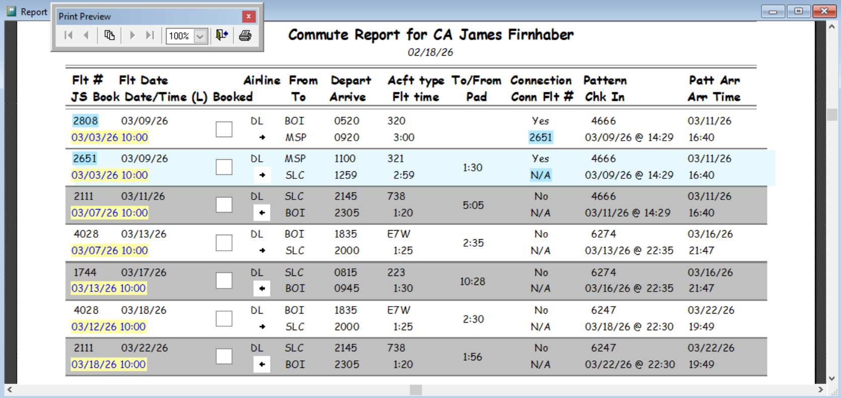 2) Updates actual (From ICrew) flown pairing processing in the Pilot